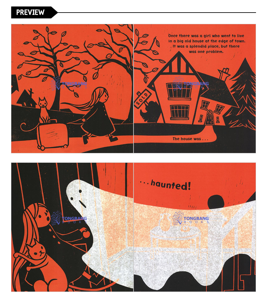 At the edge of town lives a clever girl with a spooky problem: Her house is haunted! Luckily, she happens to be a witch and knows a little something about taking care of ghosts. She catches them, puts them in the washing machine, airs them out to dry, and gives them new lives as sofa covers, table cloths, and, of course, bed sheets to cozy up under. Fresh and charming illustrations in dynamic orange, black and white bring this resourceful heroine and these spooky ghosts to life.