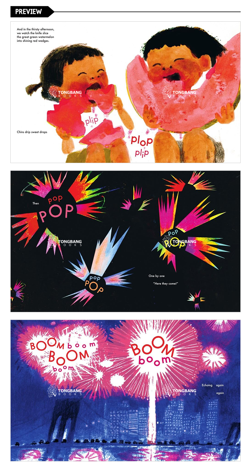 As a hot day sizzles into evening, everyone on stoops and sidewalks looks skyward on this special summer night--the Fourth of July! Words and art blossom into flowers of fire across the sky, making this a perfect read for firework enthusiasts in cities and suburbs everywhere.