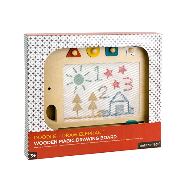 A beautiful wooden drawing board for hours of creative fun. The attached magnetic pen is perfect for doodling or writing while the four magnetic stamps can create multiple designs. The eraser bar lets kids clear the board in seconds!