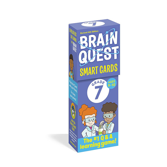 Brain Quest 7th Grade Smart Cards helps kids aged 12 – 13 to learn core classroom subjects in a smart, entertaining, and engaging way. It¡¯s a Q&A game that seventh graders can play with friends, family, or against the clock to test their knowledge. Smart cards feature hundreds of questions with answers to help kids know exactly what they need to know, when they need to know it.