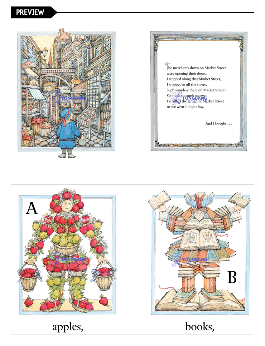 Enter a wondrous marketplace like no other that has everything from A to Z! Inspired by 17th-century French engravings, Anita Lobel¡¯s delightful illustrations imaginatively clothe each shopkeeper in their wares. Find one shopkeeper dressed completely in gloves, another covered in wigs, and even one completely dressed in oranges! This beautiful and unique tale takes you on a journey through the alphabet as you discover all the things one boy buys for his special friend during an incredible shopping trip.
