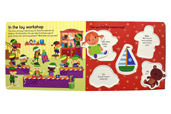 Includes book and 15 cardboard play pieces.