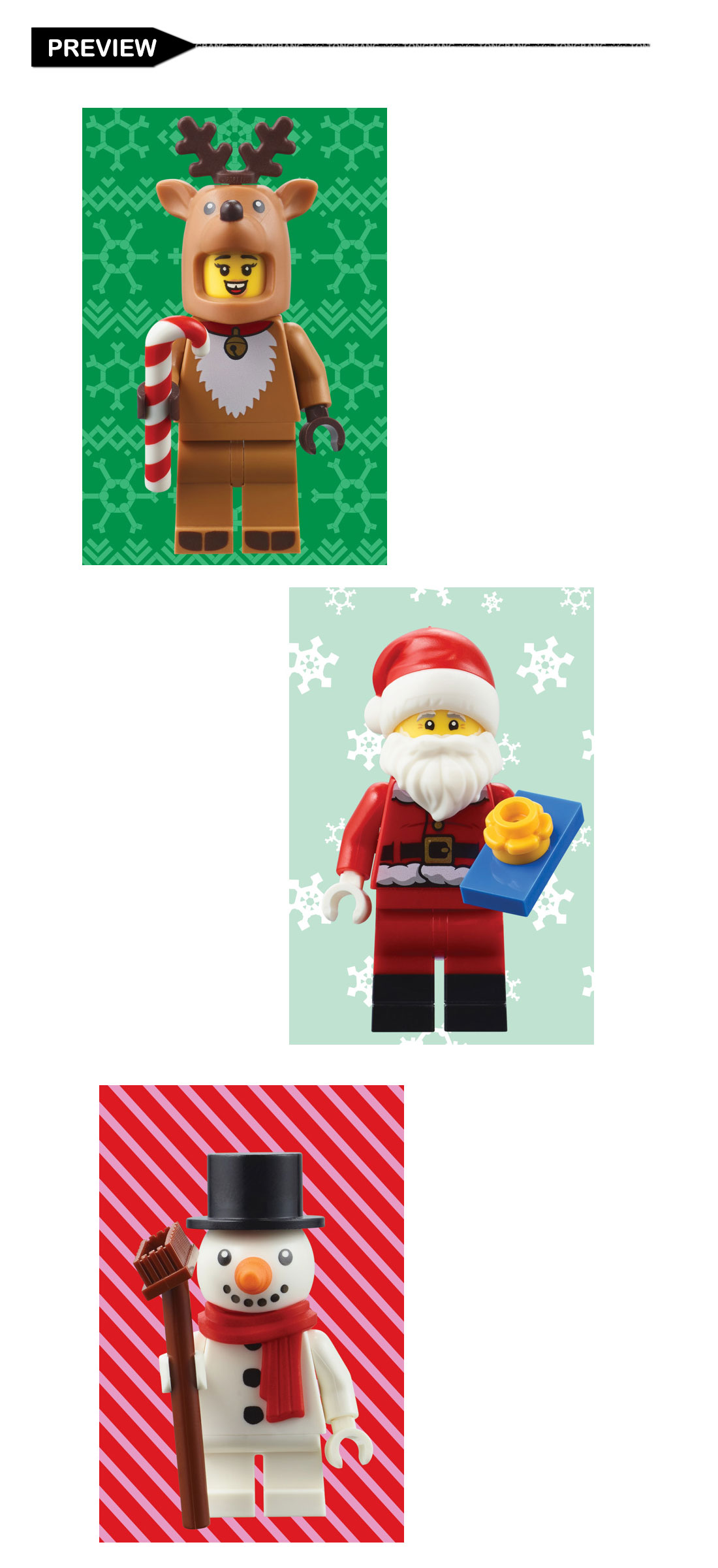 A YULETIDE SURPRISE INSIDE: Open the box to reveal your minifigure puzzle! Puzzle images include four fan-favorite festive minifigures (Reindeer Costume, Santa Claus, Snowman, and Mrs. Claus) and two additional mystery minifigures not revealed on the packaging! Collect them all. You will randomly receive one of six minifigure mini puzzles. If you purchase multiple puzzles, you may receive identical designs.