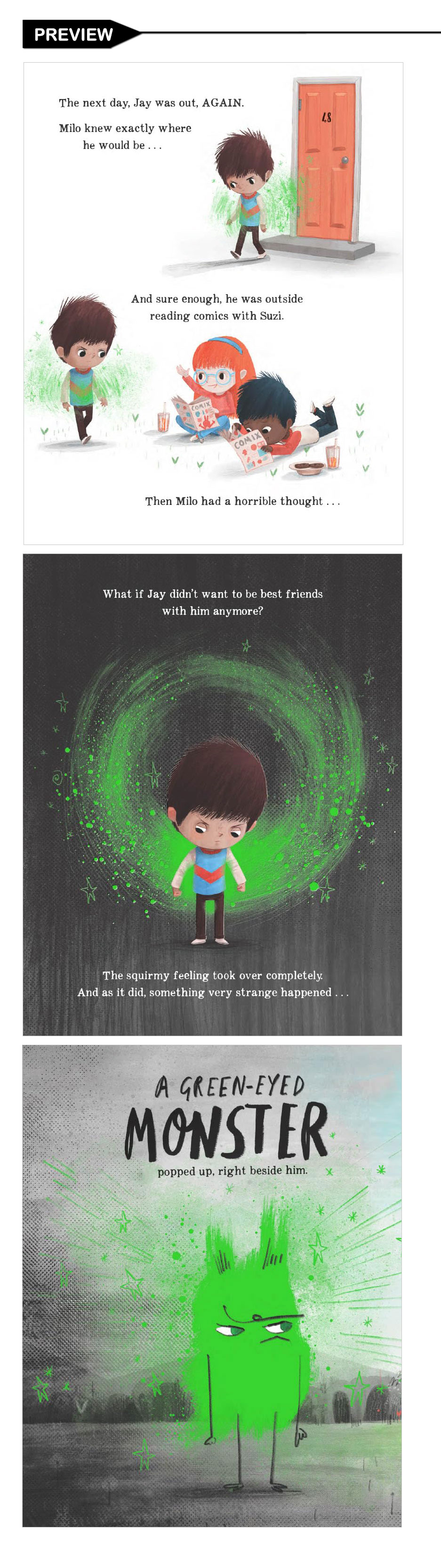 Milo loves spending time with his best friend, Jay. But when a new girl called Suzi moves in next door, Milo starts to feel left out. The jealous feeling gets stronger and stronger - until suddenly, a GREEN-EYED MONSTER pops up beside him! Soon, the monster is poisoning Milo's thoughts. It won't leave him alone!