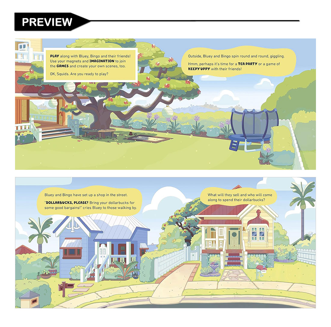 Bluey and Bingo love to play! Use your magnets of Bluey and her friends to join in on the fun and create games at home, in the forest and at school.