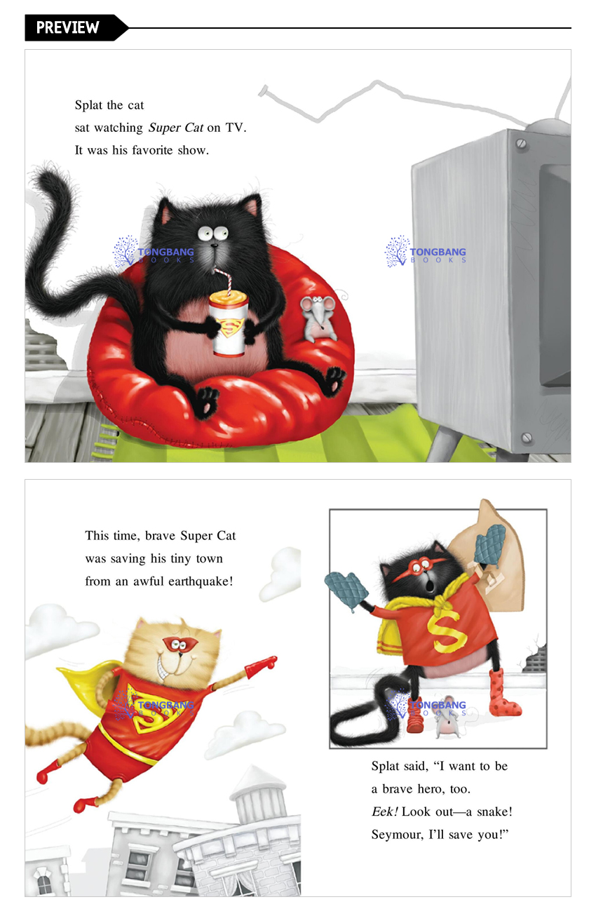 In this Splat the Cat story for beginning readers, Splat loves watching his favorite superhero, Super Cat, on the family TV, but when the set breaks, Splat has no way to watch his cherished cartoon. Splat asks himself, "What would Super Cat do?" and decides to save the day by winning a brand-new TV. The only problem is that winning the TV requires Splat to enter a cake-baking contest . . . which turns out to be a little trickier and stickier than expected. Splat's messy adventures will delight beginning readers.