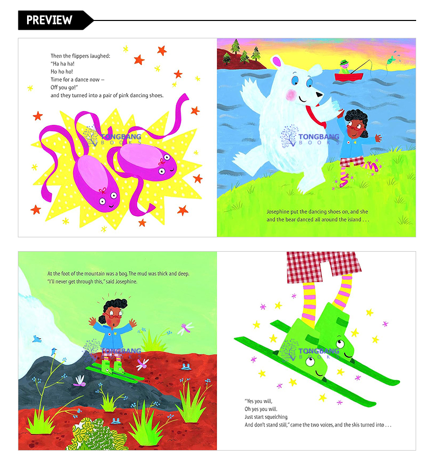 When Josephine leaves the shoe shop after buying some new running shoes, she hears an unusual sound - Click-click! Click-click! A bear with a backpack is following her! Luckily for Josephine, her new shoes are anything but ordinary - these are magic shoes. But can they help her escape the bear when there's a mountain, a bog and even a lake in her way?
