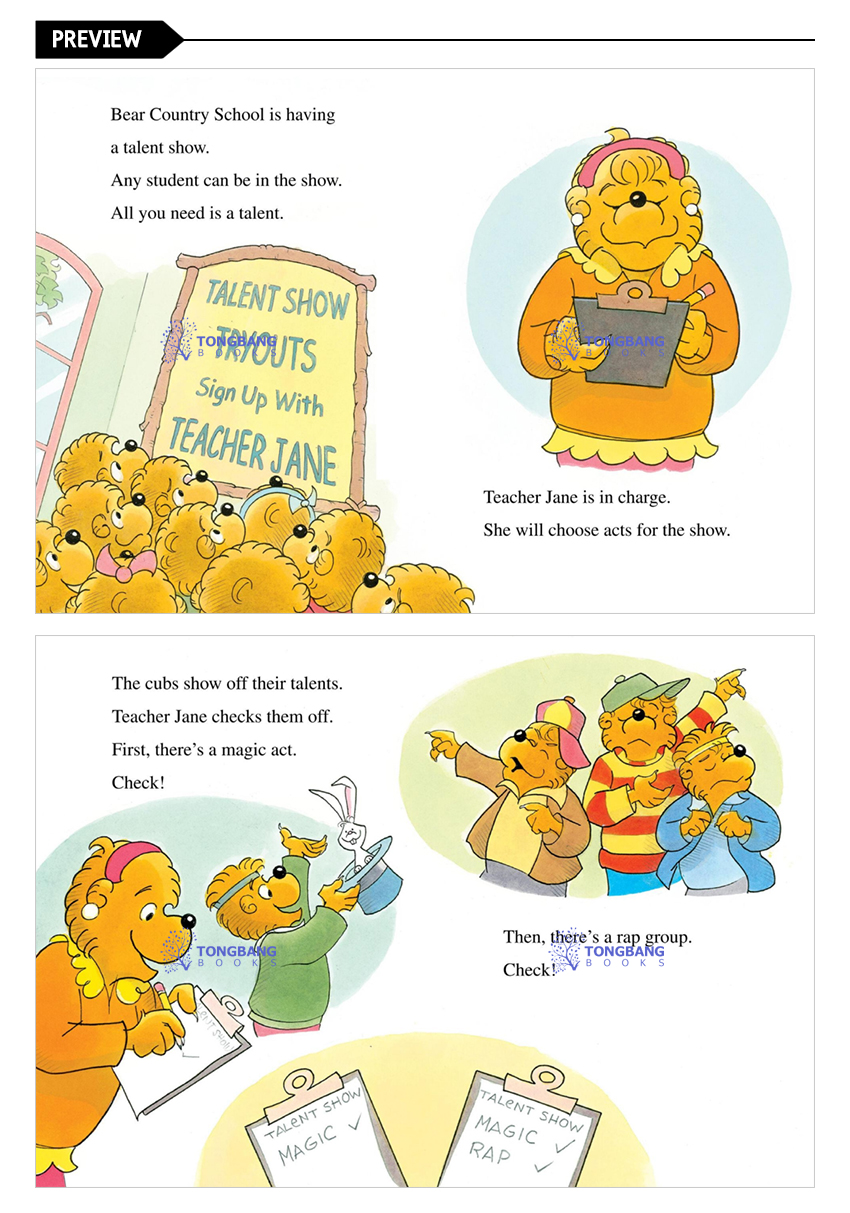 From the cub's magic tricks to Trudy's yodeling, any student can be in the show. All you need is a talent! Beginning readers will enjoy this fun tale about their favorite family of bears.