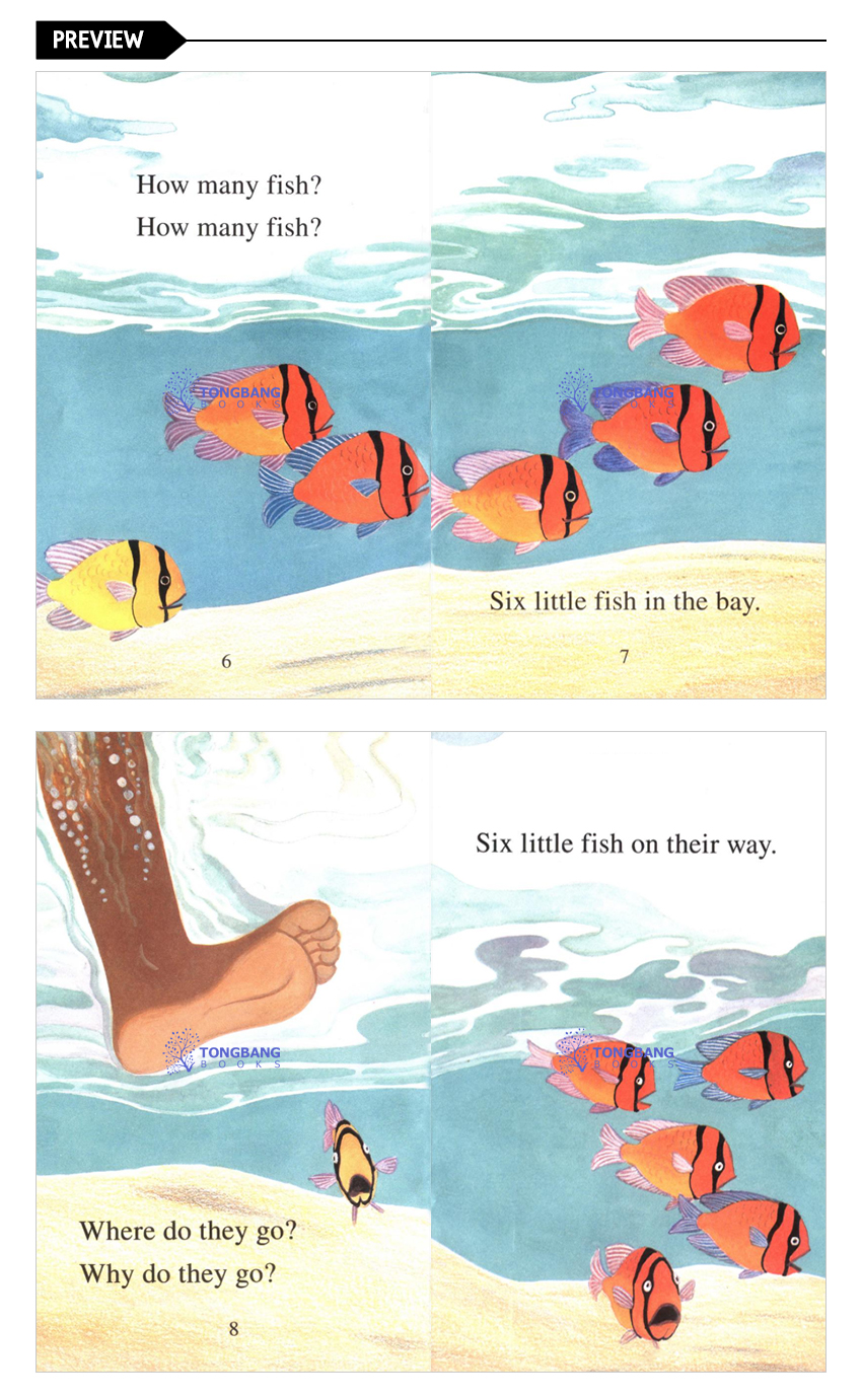 There are six little fish.Along come six little feet. What will happen when they meet?