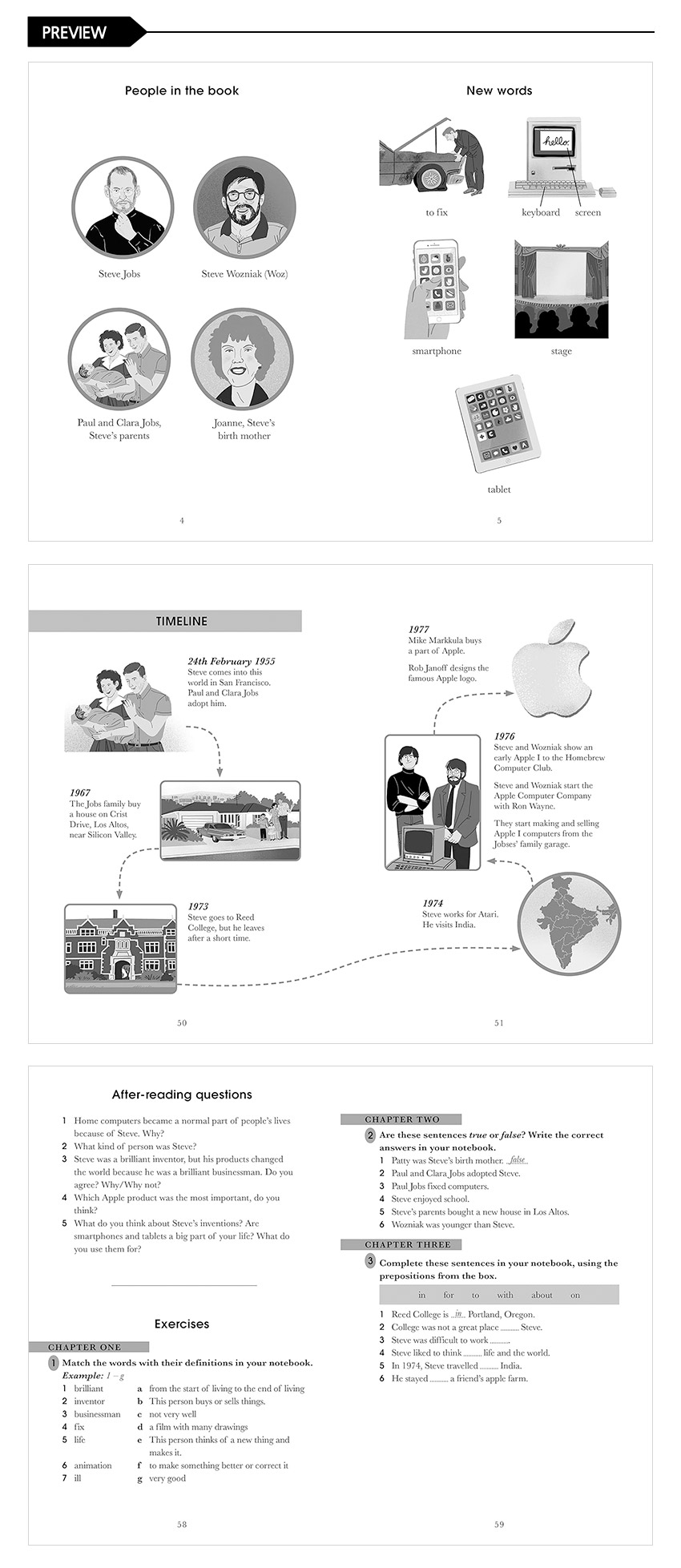 The Extraordinary Life of Steve Jobs, a Level 2 Reader, is A1+ in the CEFR framework. Sentences contain a maximum of two clauses, introducing the future tenses will and going to, present continuous for future meaning, and comparatives and superlatives. It is well supported by illustrations, which appear on most pages.