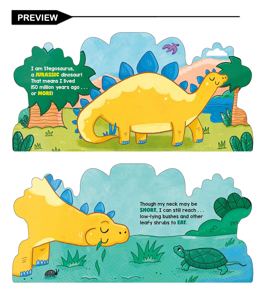 Young readers will love exploring this dinosaur-shaped board book filled with playful rhymes and facts all about the mighty Stegosaurus!