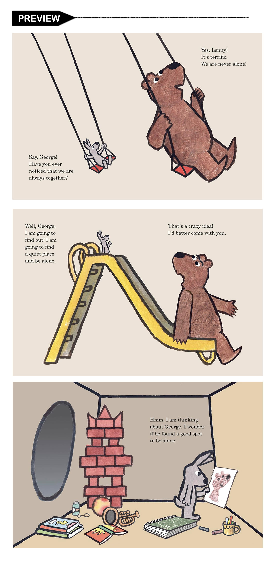 George and Lenny are always together. And it's terrific. They are never alone! So what happens when one of them decides it's time to try some alone time? Is there a way for them to be alone together?