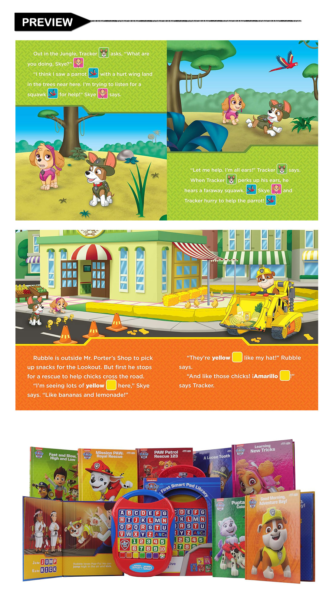 Get ruff-ruff ready to read, play, sing, and learn with the PAW Patrol! This 8-book library comes with a two-sided, talking electronic activity pad that includes hundreds of interactive learning activities related to the stories. Preschoolers will love exploring the alphabet, numbers, spelling, counting, and colors along with their pup friends!