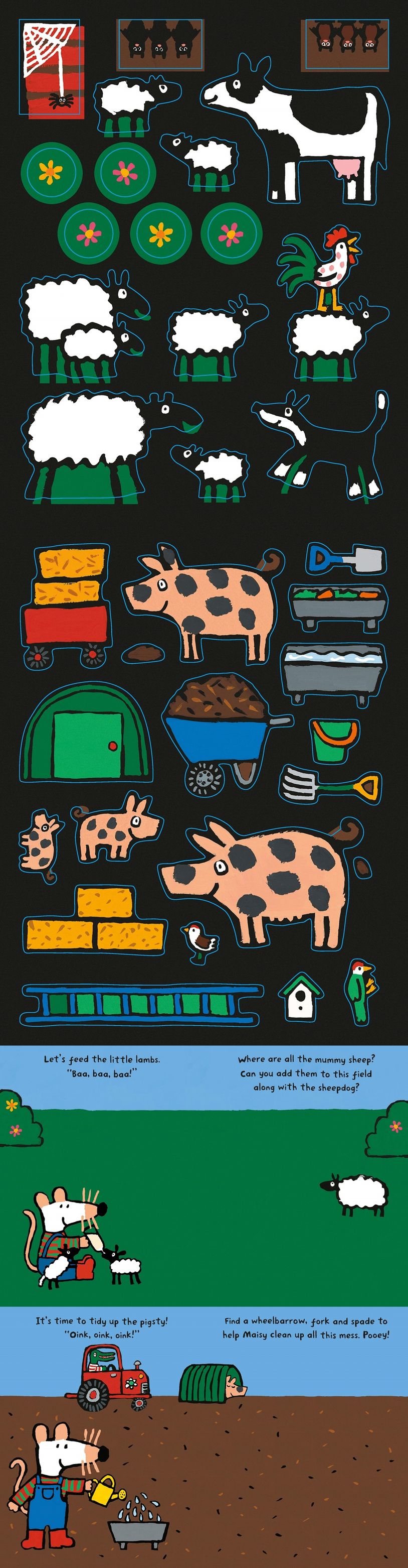 Get stuck in on the farm with Maisy in this brand new sticker book - moo, baa, neigh!A delightful farm-themed sticker book from the multi-award-winning Lucy Cousins. Join Maisy on the farm, using your stickers to fill in the fun on every page! Feed the animals, help to muck them out, and finish with a feast fit for a farmer and friends! With over 120 stickers for hours and hours of play.