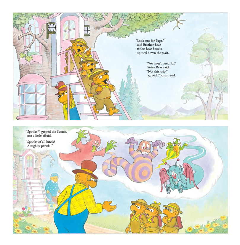 Come for a visit in Bear Country with this classic First Time Book¢ç from Stan and Jan Berenstain. Brother, Sister, and Cousin Fred are off to a Bear Scout camping trip. But once they are in the woods, the cubs think they see a ghost – or is it just Papa playing a trick? Includes over 50 bonus stickers!