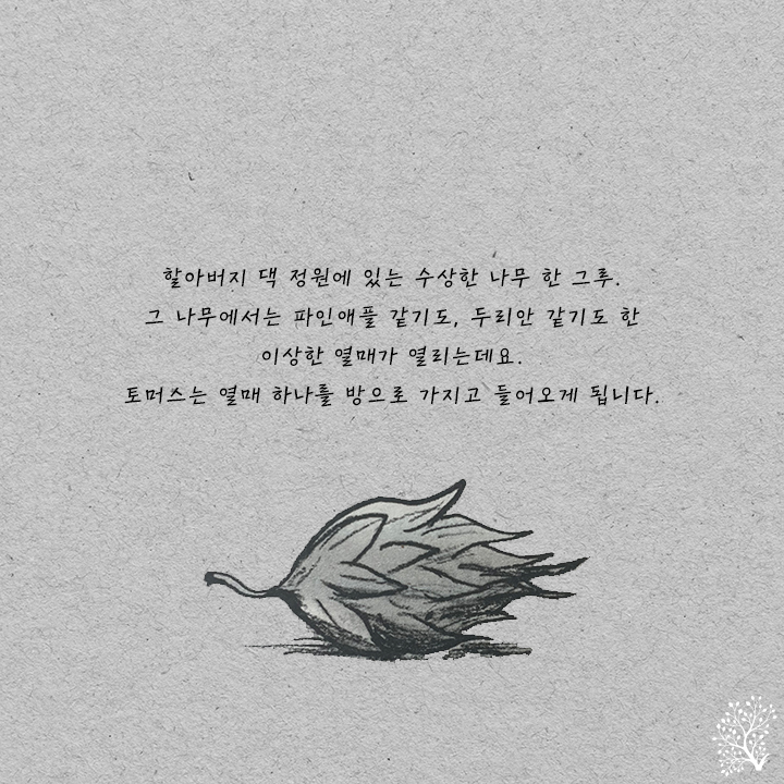 Åä¸Ó½º´Â ÇҾƹöÁöÀÇ Á¤¿ø¿¡¼ ¼ö»óÇÑ ³ª¹« ÇÑ ±×·ç¸¦ ¹ß°ßÇß¾î¿ä. óÀ½¿£ º°·Î ½Å°æ ¾²Áö ¾Ê¾ÒÁö¿ä. ÇÏÁö¸¸ ³ª¹«¿¡¼ µû¿Â ¿¸Å ¼Ó¿¡¼ ÀÛÀº ¿ëÀÌ ³ª¿ÔÁö ¹¹¿¡¿ä! ±× ³ª¹«´Â ¿ë°ú ³ª¹«·Î Åä¸Ó½º´Â ¾Æ±â ¿ëÀ» Çø®Ä¿¶ó°í À̸§Áö¾îÁÖ°í Ű¿ì°Ô µÇ¾ú¾î¿ä.
