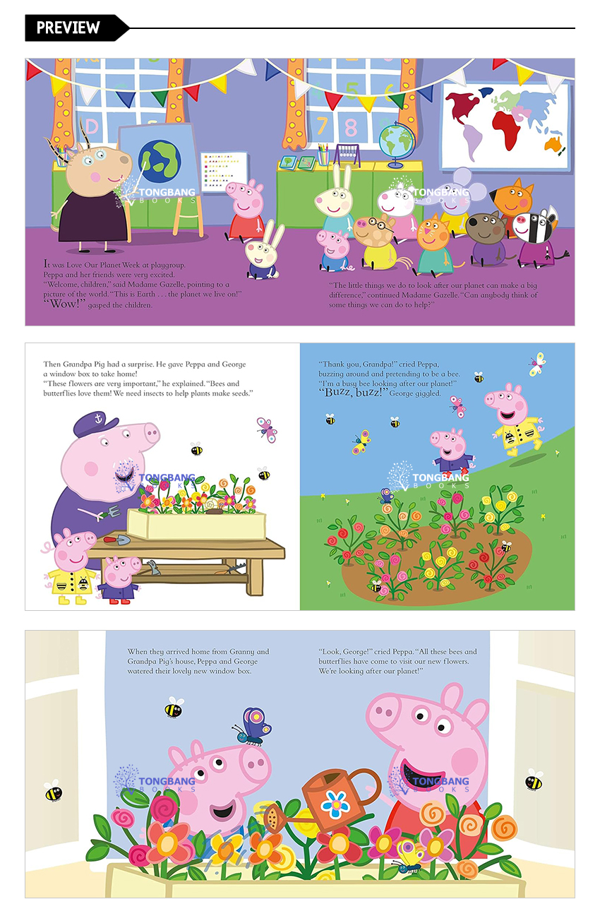 Peppa and George recycle, grow their own vegetables, turn off the taps when they are brushing their teeth and scooter to playgroup instead of going in the car. They learn that every little thing makes a BIG difference!