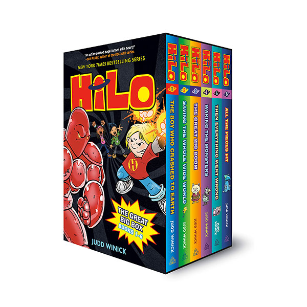 Six times the FUN! Six times the LAUGHS! Six times the ACTION! Follow the EPIC battle between Hilo and Razorwark from BEGINNING to END in this collectible box that includes the first SIX books in the New York Times bestselling series: Hilo: The Boy Who Crashed to Earth; Hilo: Saving the Whole Wide World; Hilo: The Great Big Boom; Hilo: Waking the Monsters; Hilo: Then Everything Went Wrong; and Hilo: All the Pieces Fit.