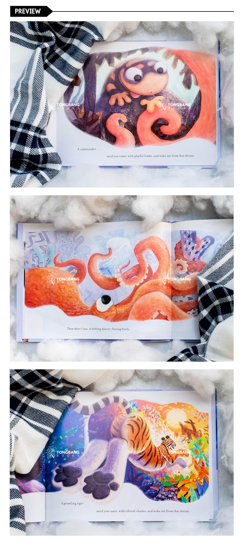 Welcome to a magical world of endless curiosity. You are a sleeping salamander. A dancing octopus. A speeding falcon...even a sneaking tiger and playful human child. As one dream slips into another, every page turn immerses you in the sensory wonder of the world and all its creatures, from the ocean depths to soaring skies, and everything in between. Each creature dreams and experiences life in a different way. Each is connected despite their differences.