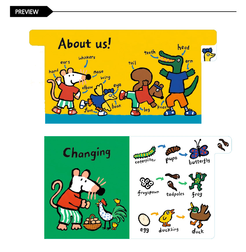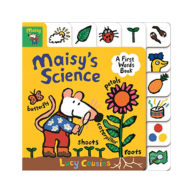 Join Maisy as she investigates the world around her. Each spread is themed around different early science concepts; weather, changing seasons, plants and insects, growing, life cycles, parts of the body, textures, sounds and electricity. With bright, colourful, clearly labelled pictures to help broaden vocabulary and understanding and bold, easy-to-use tabs which are perfect for helping little ones to locate their favourite pages again and again. Early learning is so much fun!