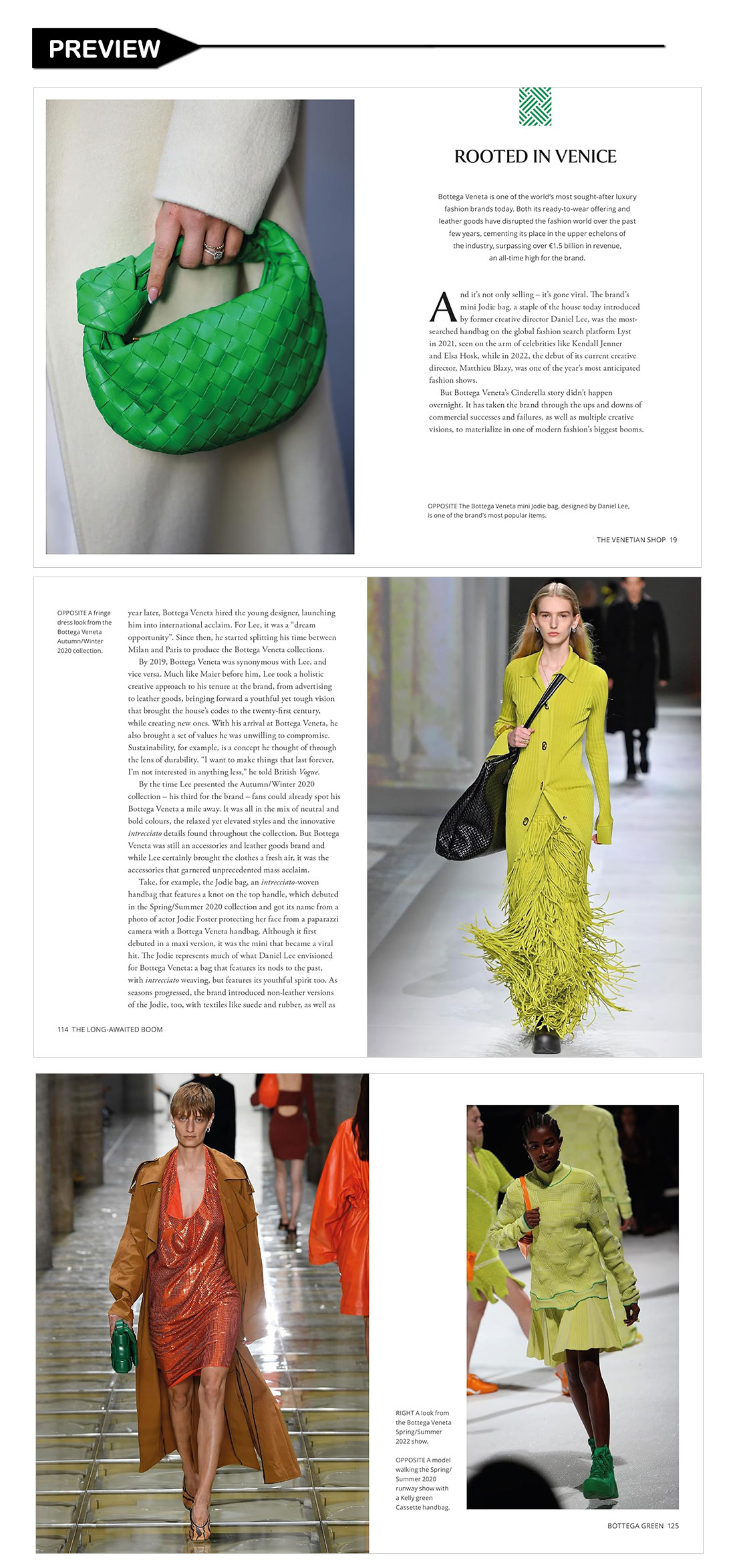 Since 1966, Bottega Veneta has stood out from the crowd, unique in its blend of timeless sophistication and contemporary edge. Known for the distinctive Intrecciato woven design and statement green, this Milan-based luxury brand is renowned for beautifully-crafted leather goods such as the Cabat, Veneta, and iconic clutch Knot bags and increasingly famous footwear and jewellery collections.