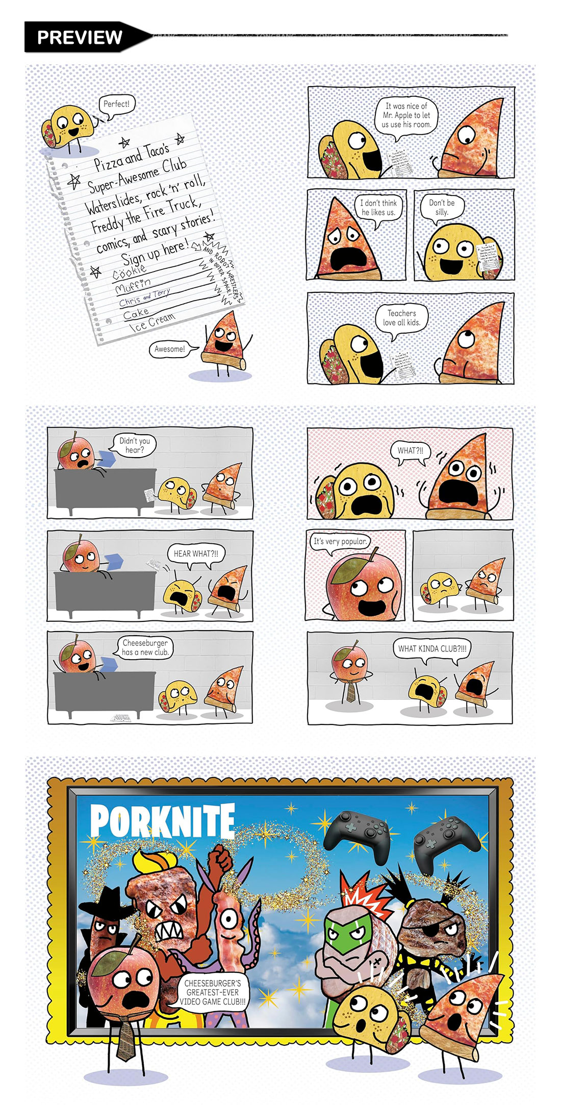 Pizza and Taco are serving up more awesomeness with a cool new club! They can't wait to talk about all their favorite interests...including making comic books. Lots of people signed up, so they know it's going to be popular! Then why does everyone go to Cheeseburger's video game club instead?! Pizza and Taco have no choice but to check it out. They just might learn that kids want to make comics just as much as they want to play video games!