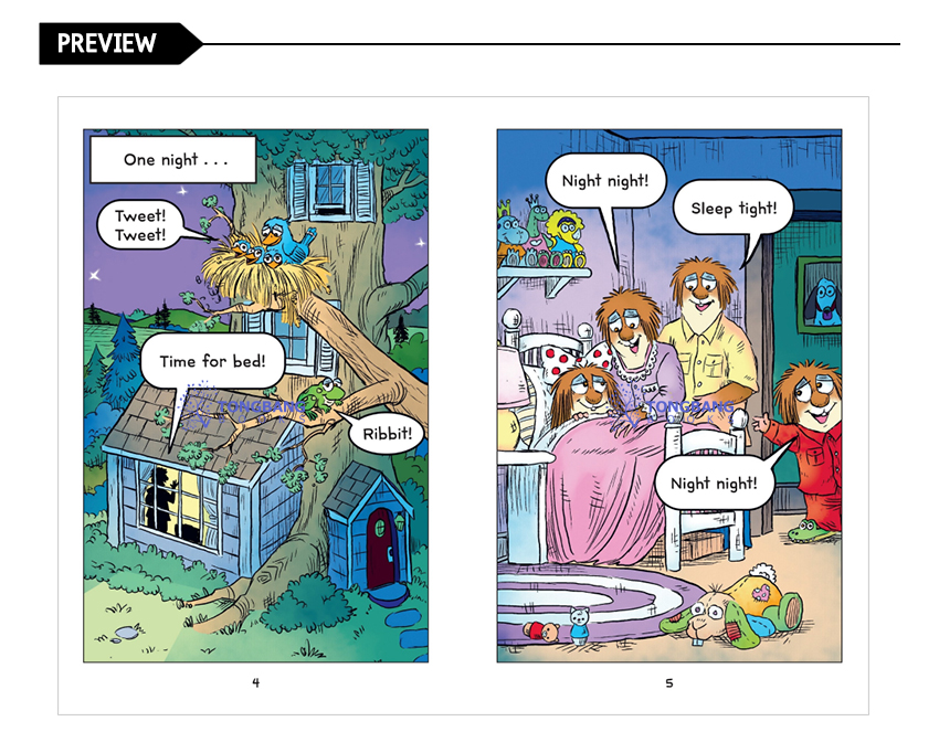 Emergent readers will enjoy the humor and mystery in Little Critter: Night Night! Sleep Tight! Who better to help children navigate the challenges of learning to read than their friend Little Critter? There are many Little Critter I Can Read titles, but Night Night! Sleep Tight! is the second in the esteemed I Can Read Comics line (after Little Critter: Tricky Chickies). These leveled comic books hook children on reading, give them the confidence to read on their own, and promote visual literacy.