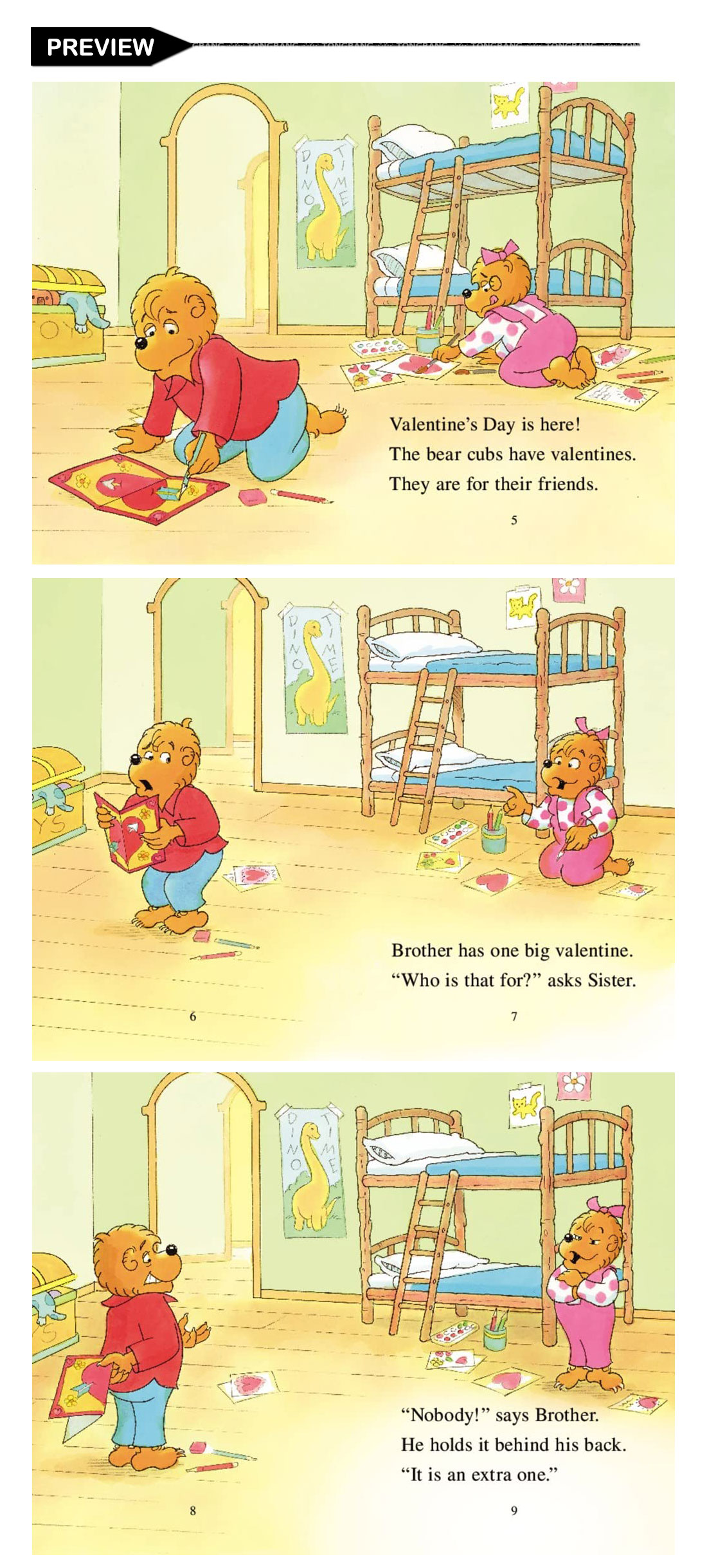 Brother and Sister Bear have made valentines for all their friends. Brother Bear has even made a big card for someone special—and Sister Bear wants to guess who!