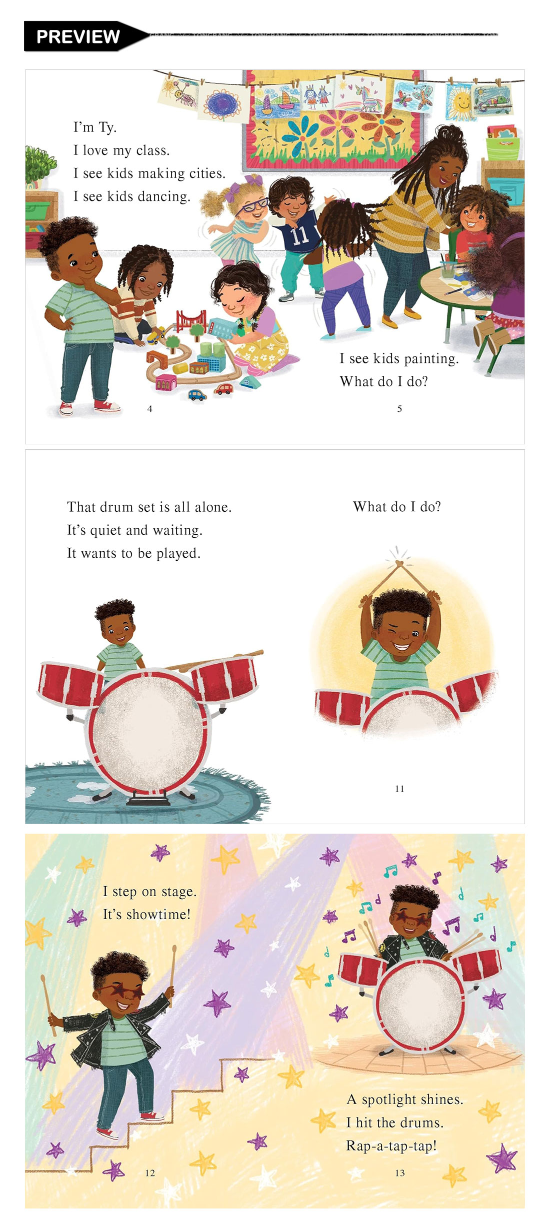 Join Ty on his imaginative adventures in Ty's Travels: Showtime, a My First I Can Read story by acclaimed author and illustrator team Kelly Starling Lyons and Niña Mata. Music, imagination, and play are highlighted, making this perfect for sharing with children ages 3 to 6.