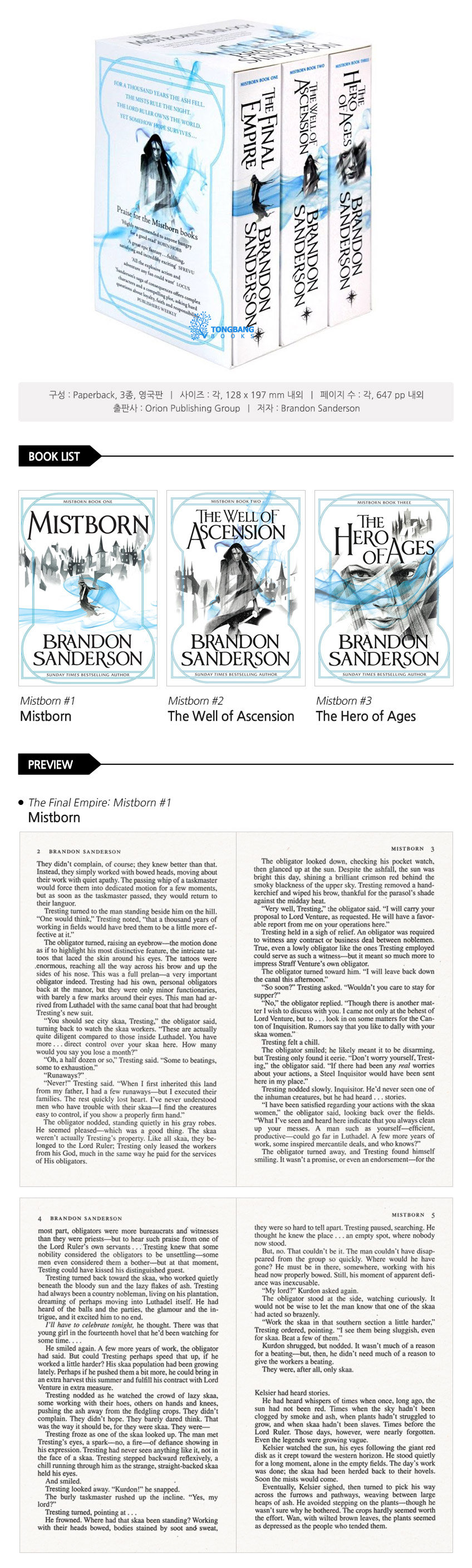 A word of mouth bestseller in the USA Brandon Sanderson's Mistborn trilogy have now become a massive hit in the UK, introducing readers to the work of one of the genre's great talents. A master of world building, sweeping plots, believable characters and engrossing magic systems.