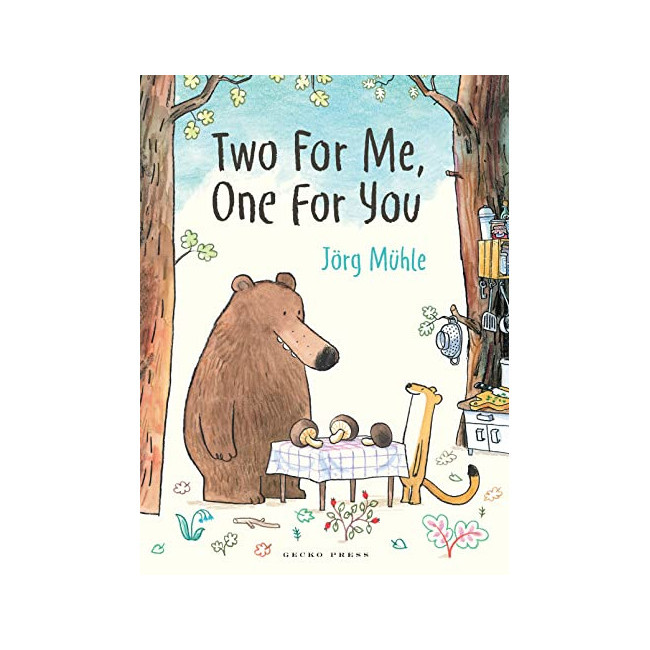 Bear finds three tasty mushrooms on her way home through the woods. Her friend Weasel cooks them up in the frying pan. But the friends have a problem: how to share three between two?