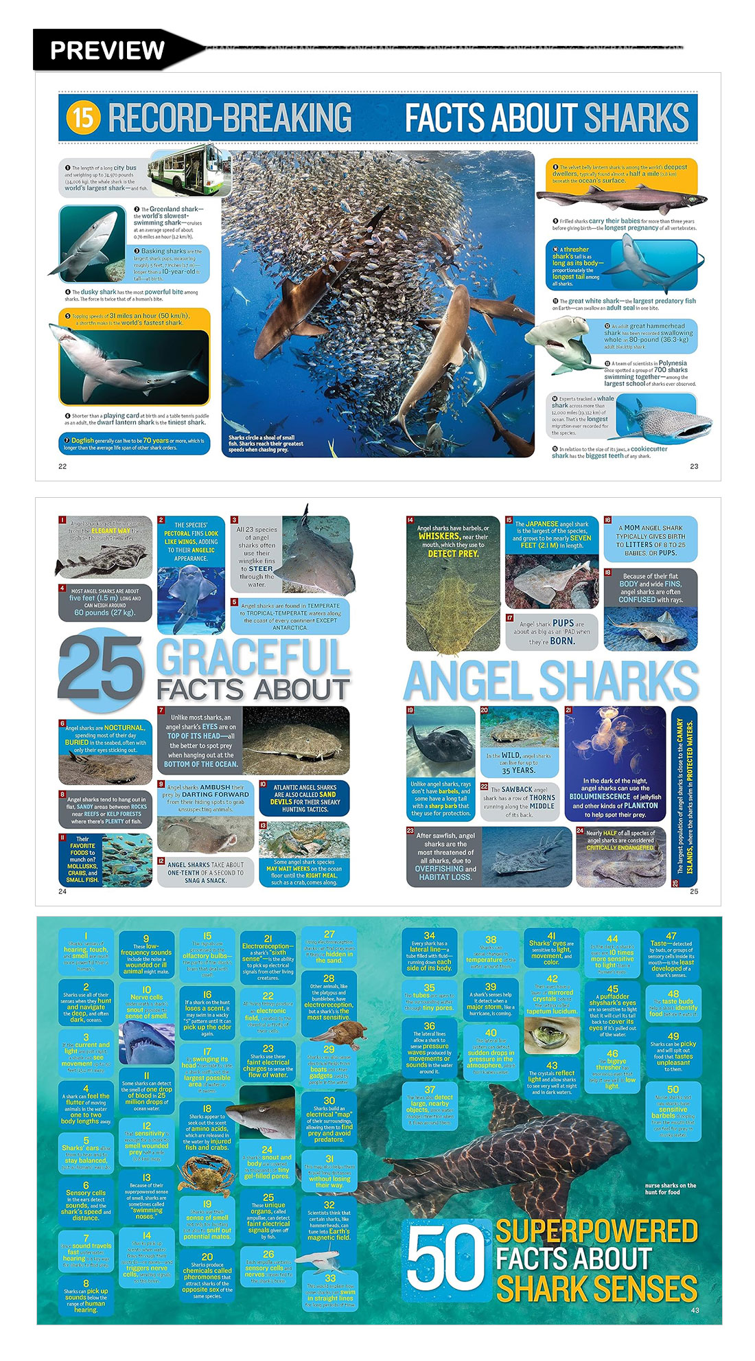 Dive into 1,000 sensational facts about these fierce and fascinating predators, from great whites to whale sharks, reef sharks, goblin sharks, and more!