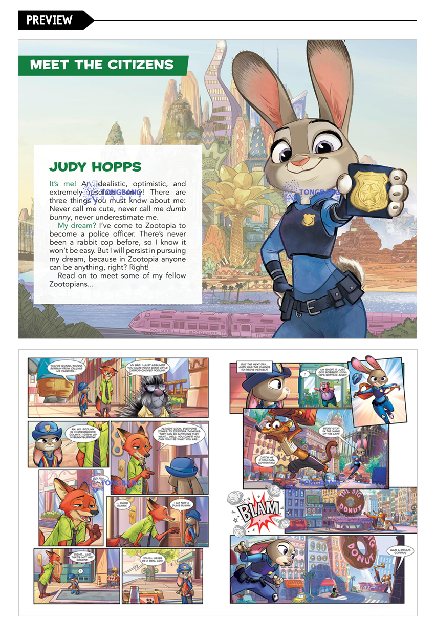 Welcome to Zootopia, a city like no other! This modern mammal metropolis is comprised of habitat neighborhoods like ritzy Sahara Square and frigid Tundratown, it's a melting pot where no matter what you are, from the biggest elephant to the smallest shrew, you can be anything. But when optimistic Officer Judy Hopps arrives, she discovers that being the first bunny on a police force of big, tough animals isn't so easy. Determined to prove herself, she jumps at the opportunity to crack a case, even if it means partnering with a fast-talking, scam-artist fox, Nick Wilde, to solve the mystery. Together, they'll show that anyone can make a difference!