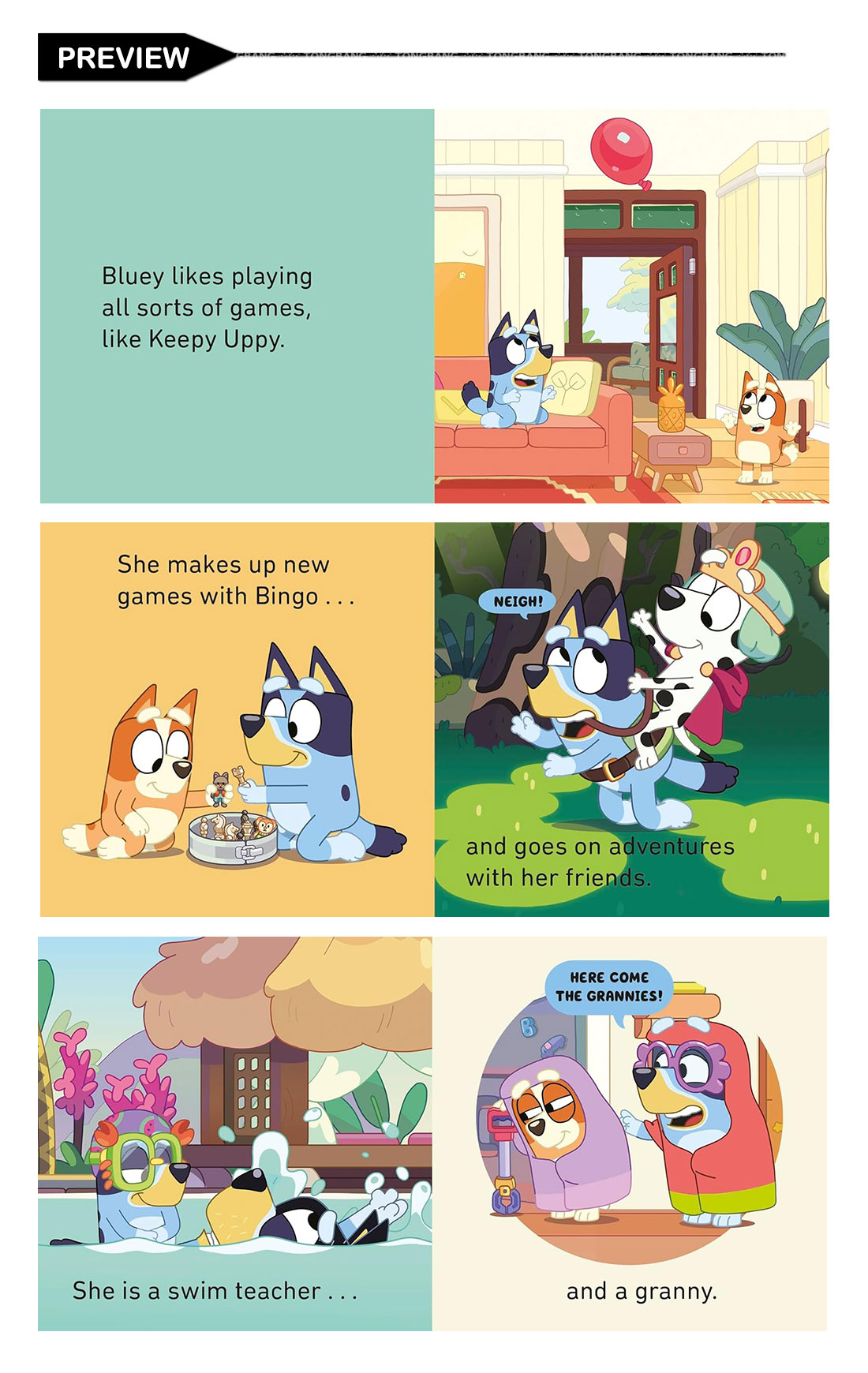 Follow along the mini stories with your favourite Bluey characters and play all their favourite games.