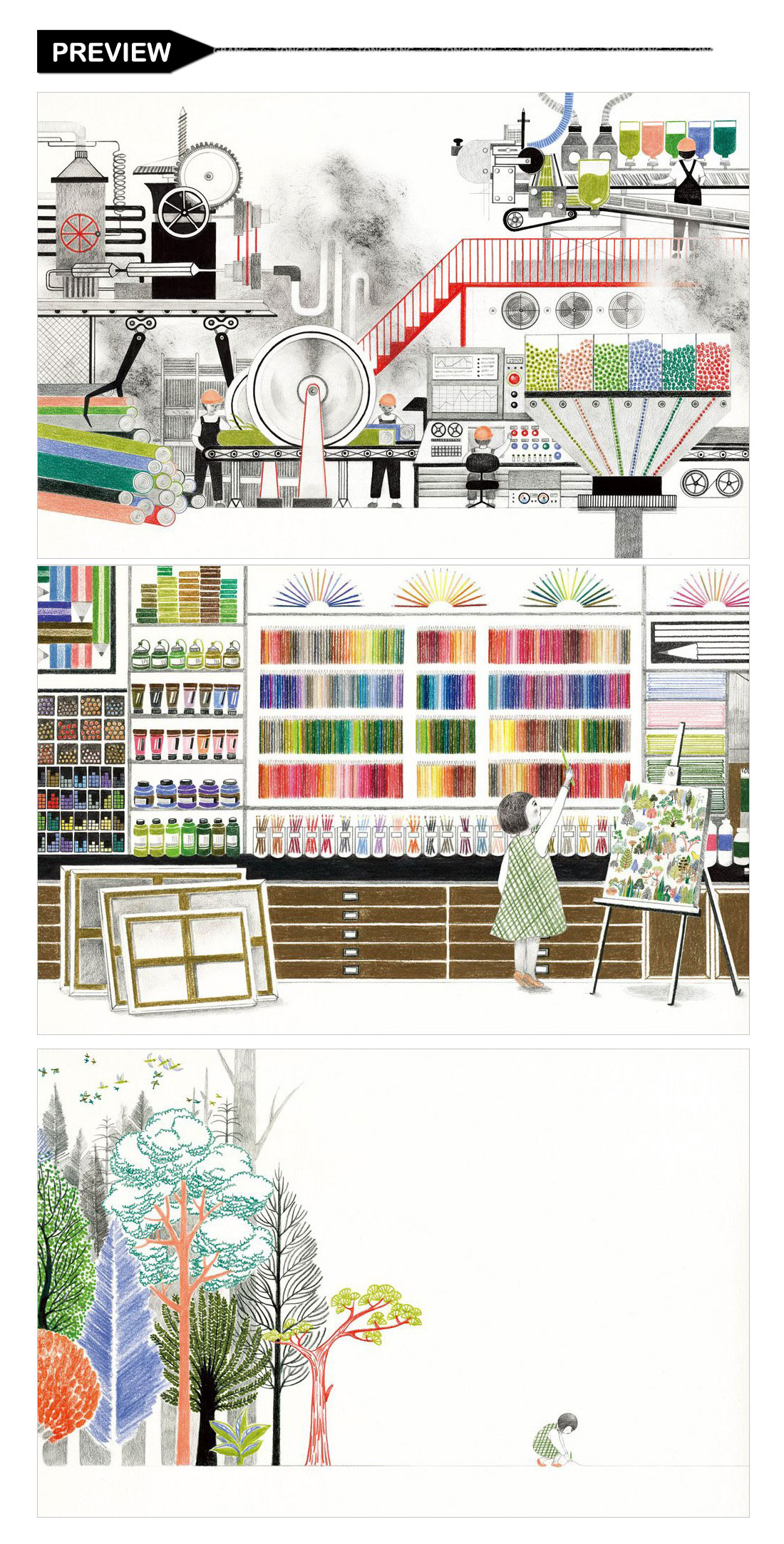 What is a pencil? A forest transformed. In this beautifully illustrated wordless picture book, young readers can follow a pencil's life cycle from tree to factory to store shelf and back to tree.