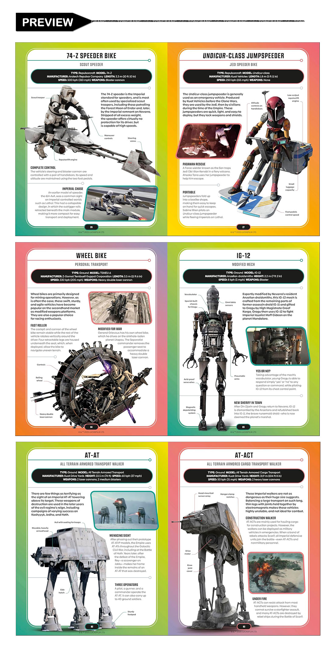 This latest edition covers over 230 vehicles from Star Wars movies and TV series, including The Rise of Skywalker, The Mandalorian, Ahsoka, and more! From enormous Sith Star Destroyers to Kylo Ren's TIE whisper to Din Djarin's shiny N-1 starfighter, learn all about your favorite modes of transportation from a galaxy far, far away.