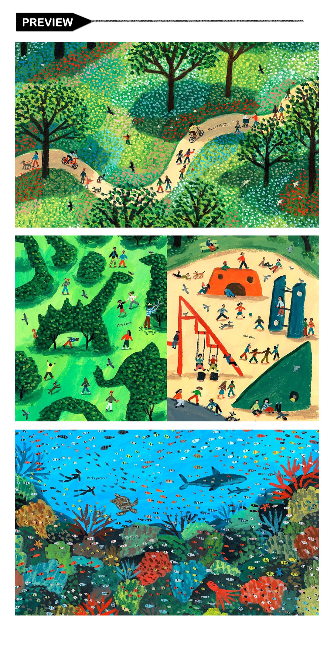 With poetic text and sweeping illustrations, Marc Majewski delivers a unique, accessible look at parks all around the world: from Central Park to the Serengeti to the Great Barrier Reef and everything in between.