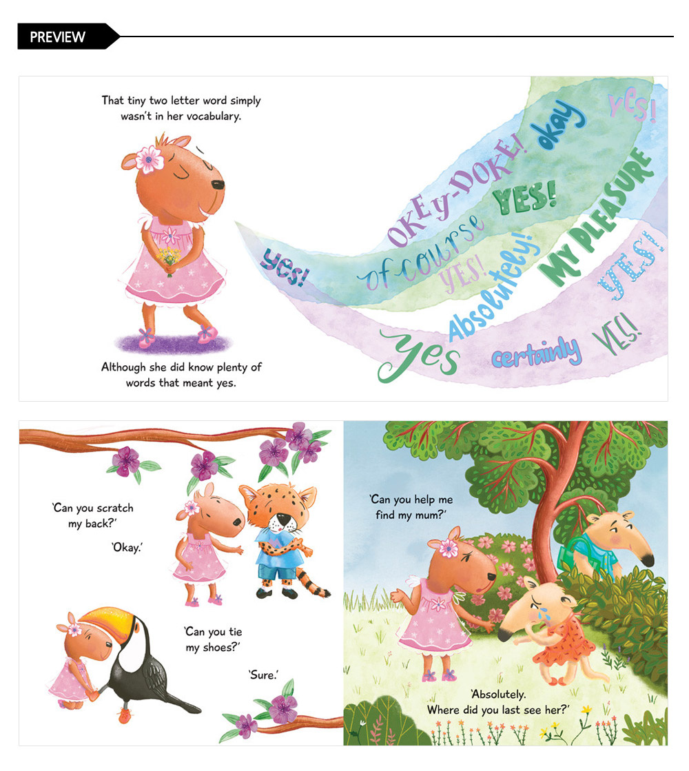 In Clara Capybara, young Clara – like the rest of her species – is friendly and amiable and loves to please others. But with her ¡®can do¡¯ attitude, it¡¯s easy for Clara to be taken advantage of. When Clara finds herself unable to say no to the constant demands on her time, Mama imparts some wise words to help Clara implement a plan that involves diplomacy and better self-care.