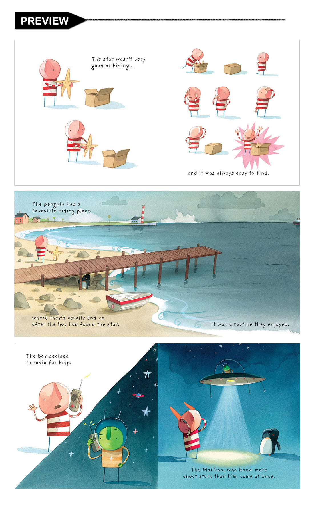 Once there was a boy who would often play hide-and-seek with his friends the star and the penguin. The star was always easy to find, but one day it went missing. So, the boy radioed the Martian for help and soon found himself on an exciting spaceship rescue mission to the North Pole! But there, he discovered that he wasn¡¯t the only one who had always dreamed of having a star as a friend¡¦