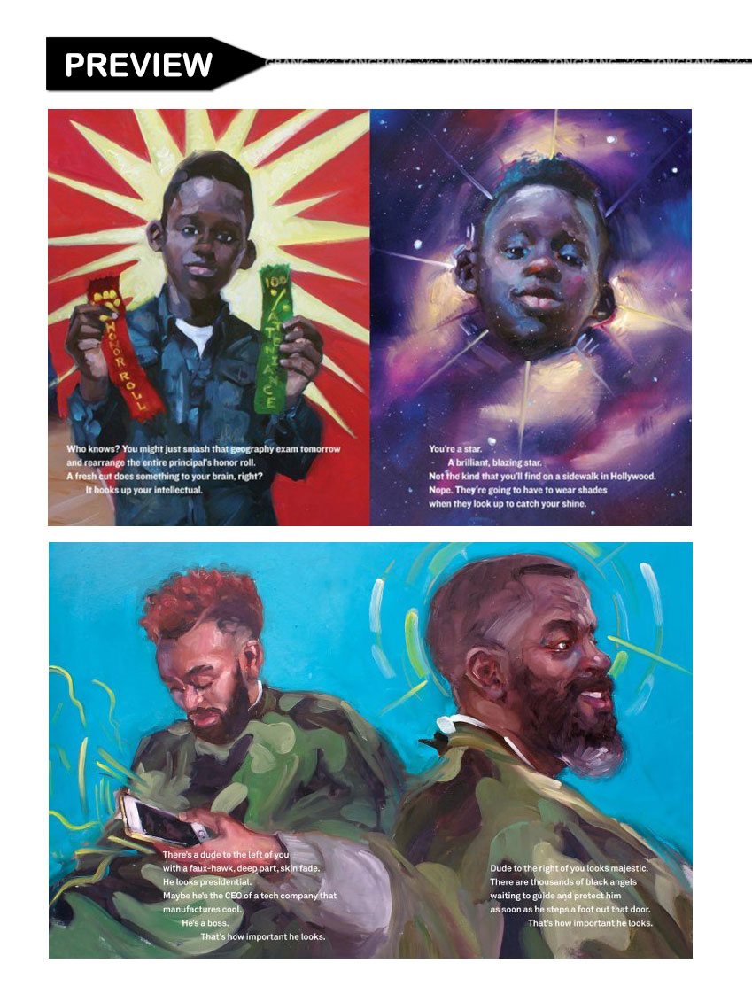 The barber shop is where magic happens! Boys go in as lumps of clay and, with princely robes draped around their shoulders, a dab of cool shaving cream on their foreheads and a slow, steady cut, they become royalty, aware of every great thing that could happen to them when they look good. Their grades improve, they get noticed, they feel good about themselves. This rhythmic, read-aloud title is an unbridled celebration of the self-esteem, confidence and swagger boys feel when they leave the barber's chair. It's a tradition that places a figurative crown on their heads that perfectly confirms their brilliance and worth.